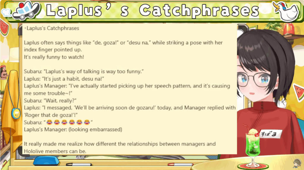 Laplus’s manager—called “M-chan,” with the “M” standing for manager in Hololive—said the way of speaking rubbed off on her, and she laughed that it gave her some trouble.